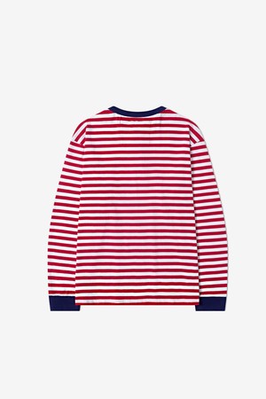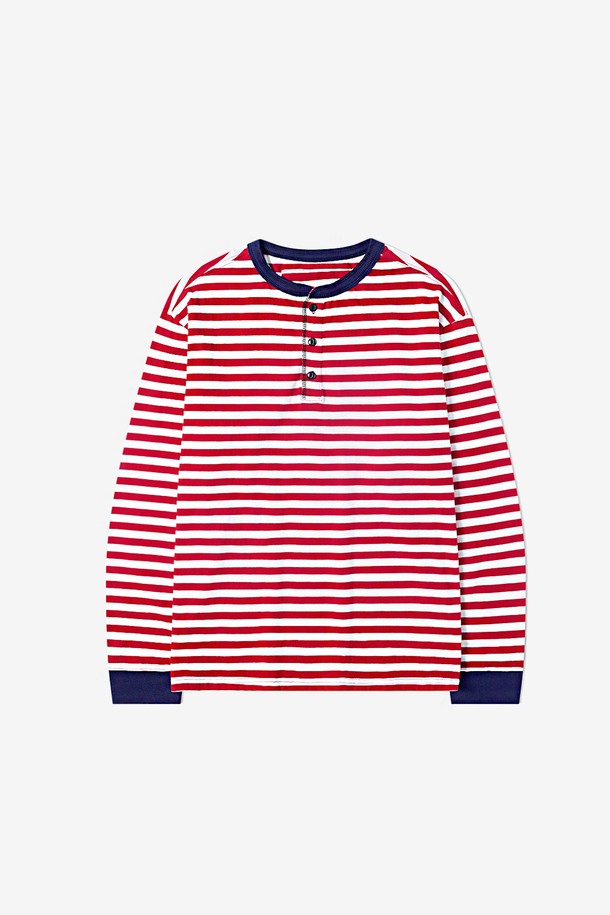 French Marine Stripe Henley T-Shirt (Red/Navy)