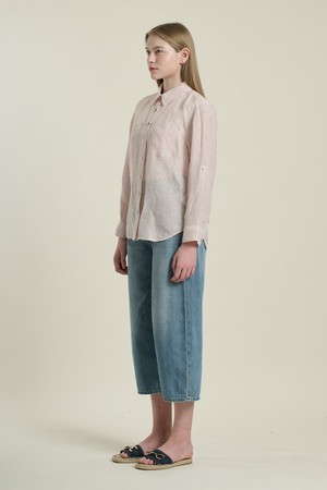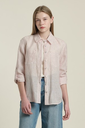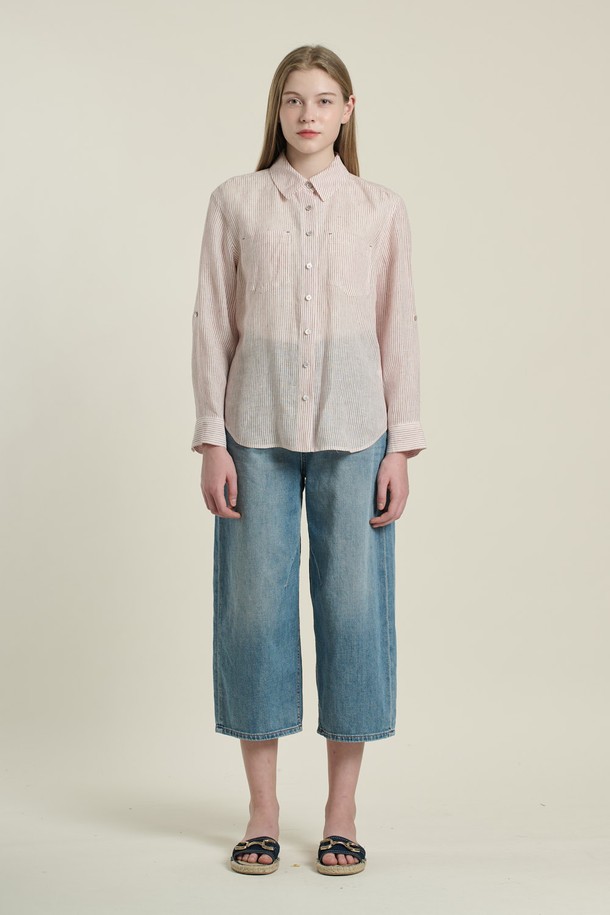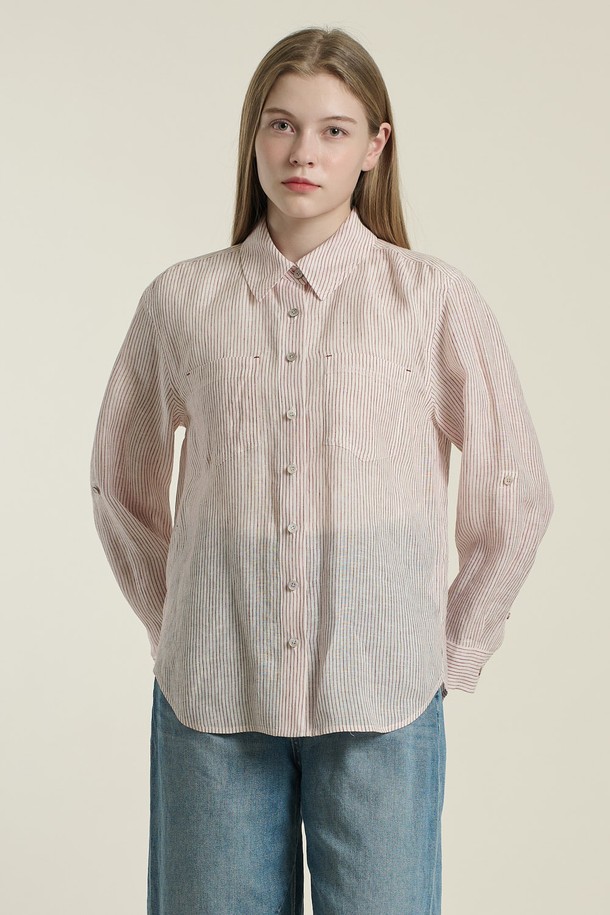 [26SU] 오버핏 스트라이프 린넨 셔츠 - WHITE B6B3B40210