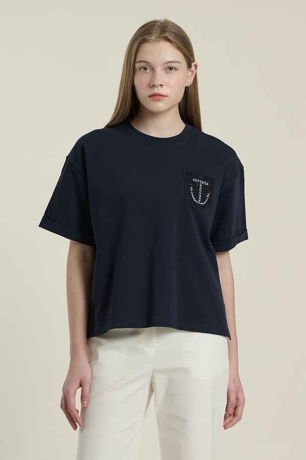 [26SU] 루즈핏 크롭 티셔츠 - NAVY B6B4X42455