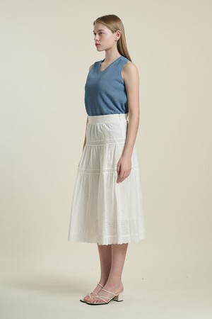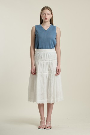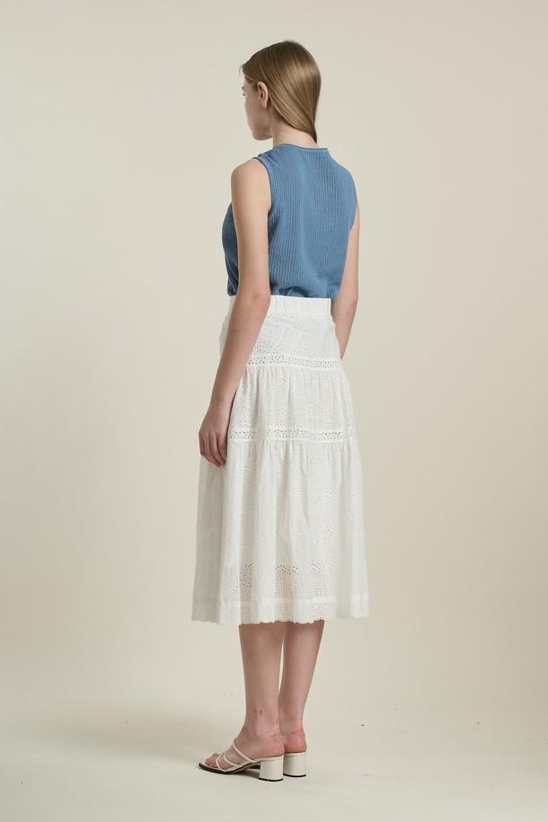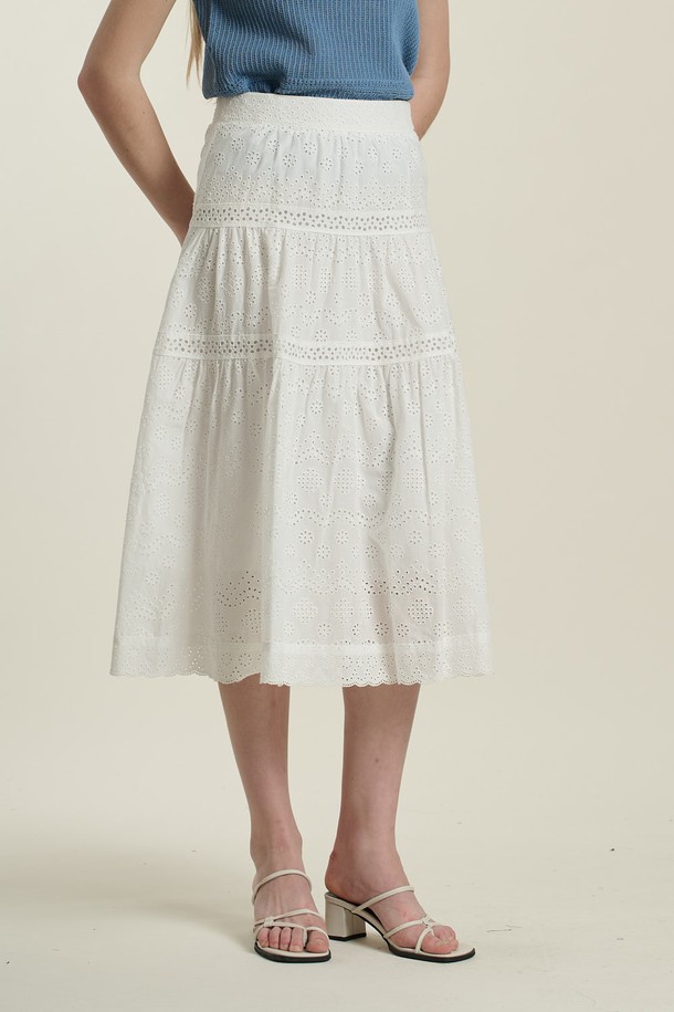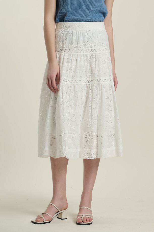 [26SU] 아일렛 티어드 스커트 - WHITE B6B4S22110