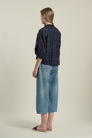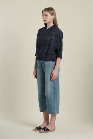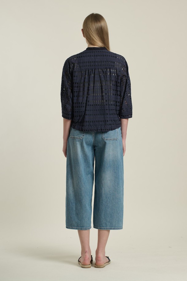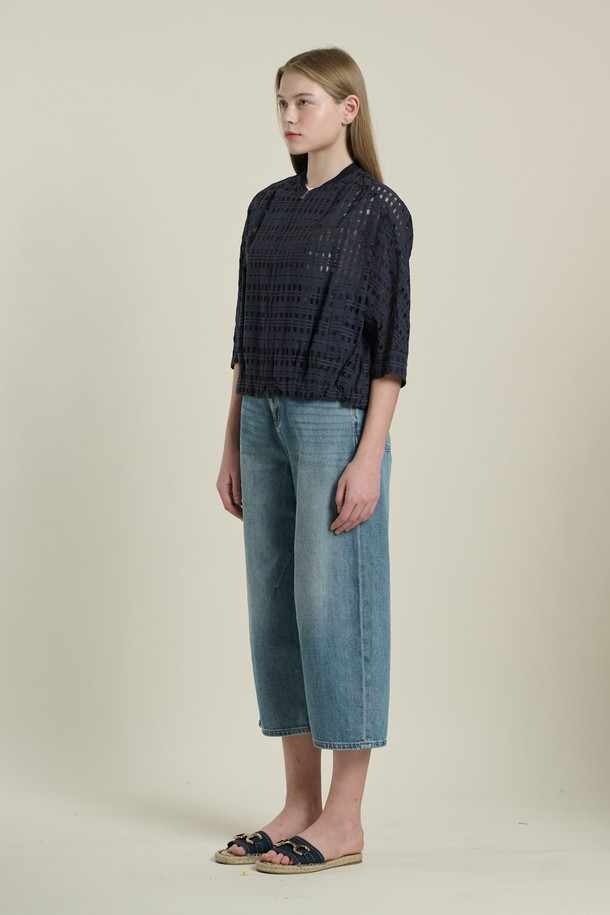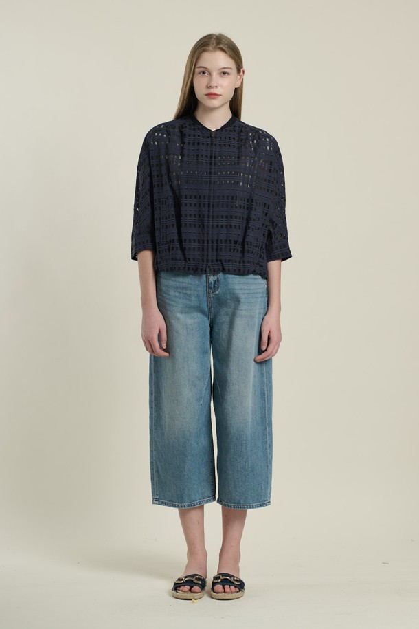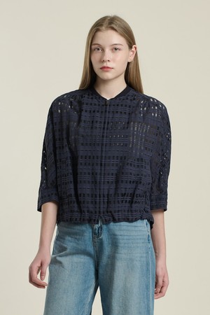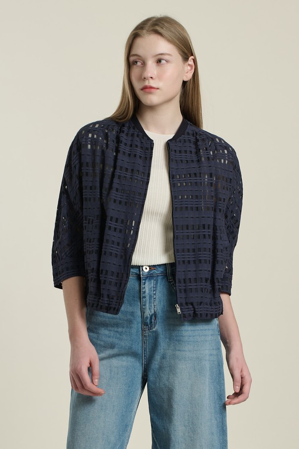 [26SU] 니트패치 쉬어체크 점퍼 - NAVY B6B4R12155