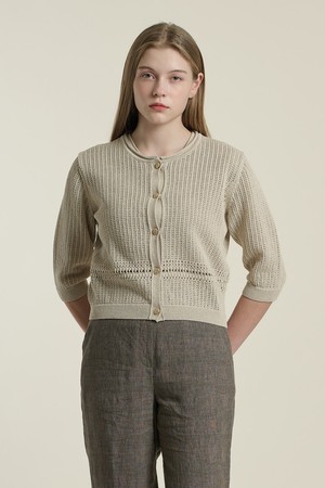 [26SU] 크로셰 트윈 라운드넥 가디건 - M BEIGE B6B4K11772
