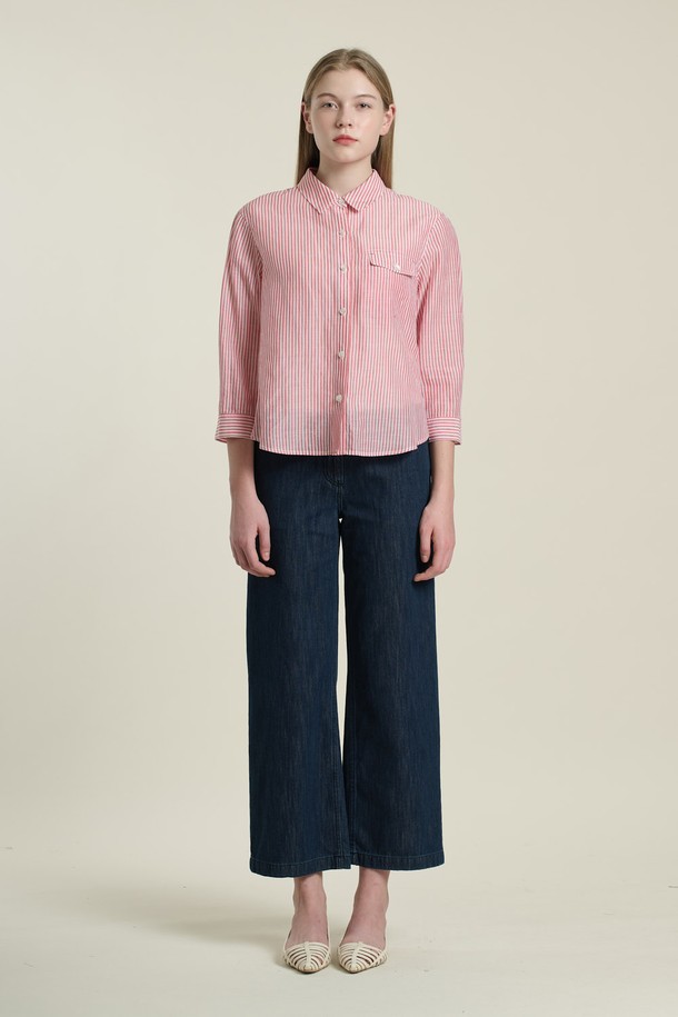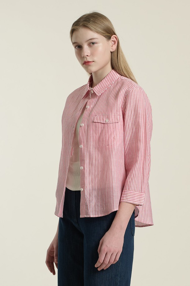 [26SU] 린넨 스트라이프 셔츠 - RED B6B4B43024