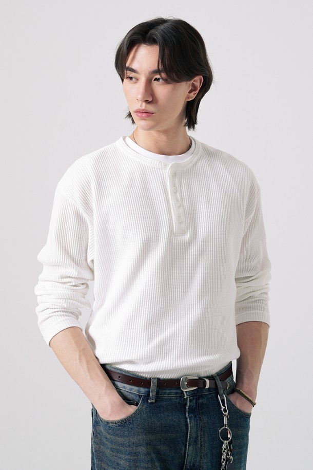 텍스처 헨리넥 긴팔티셔츠 아이보리 SJLT2690
