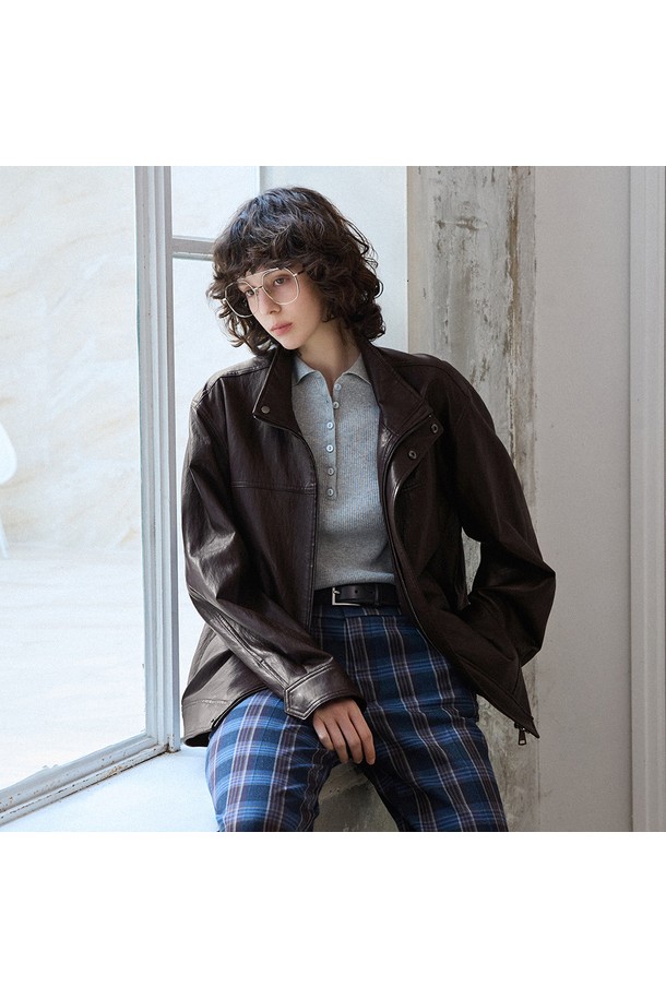 유니섹스 신세틱 레더 인시전 자켓 [브라운]