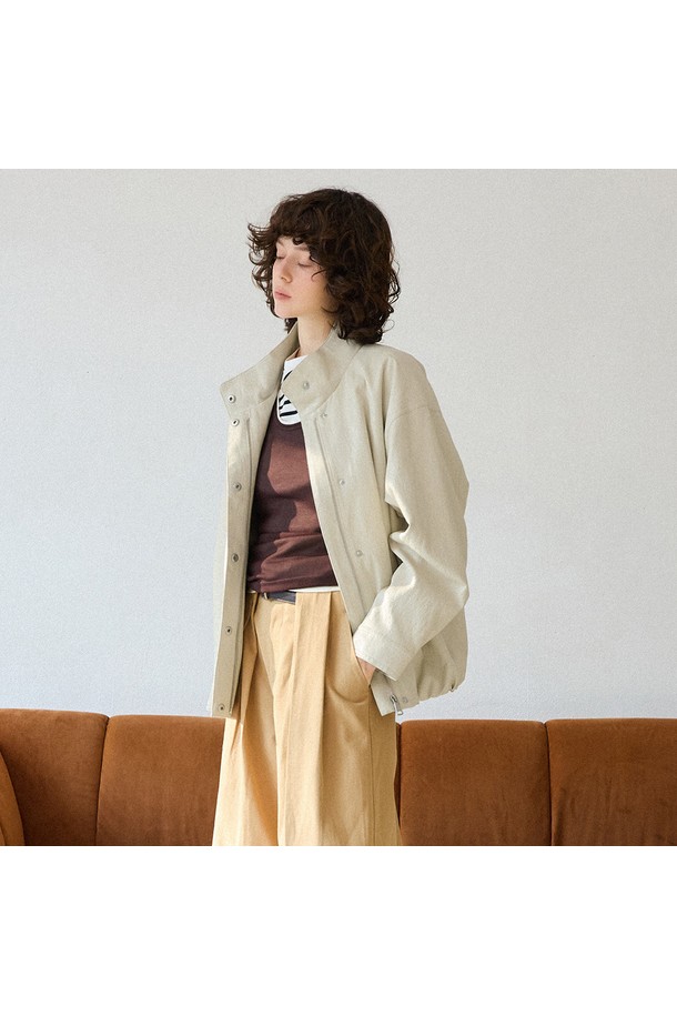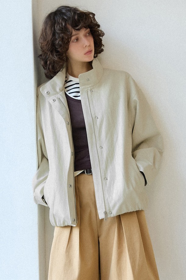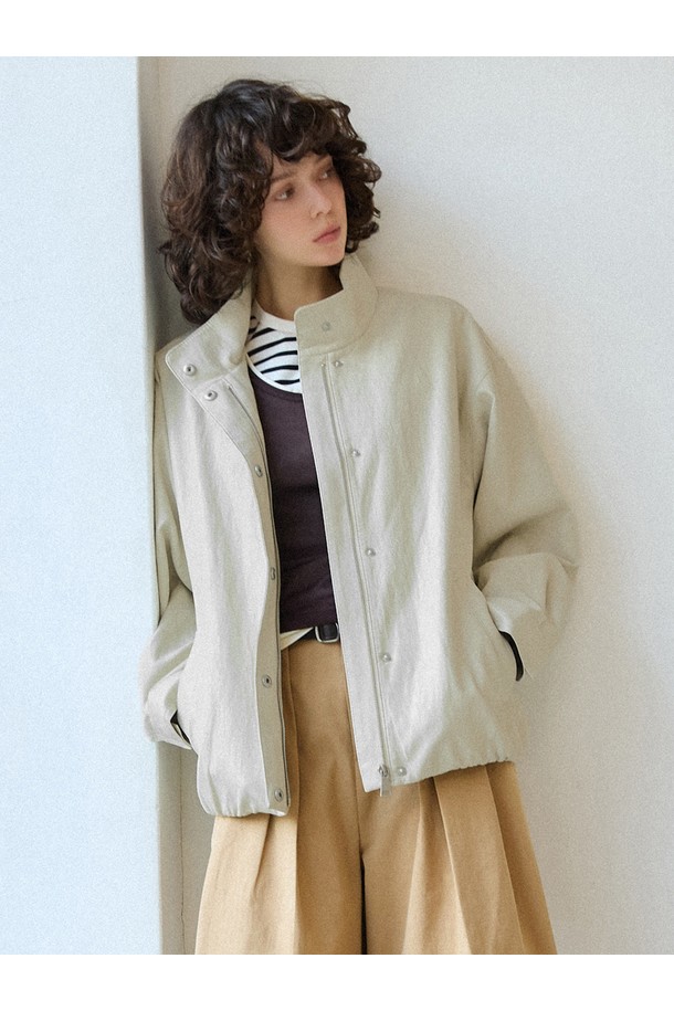 신세틱 레더 하이넥 블루종 [아이보리]
