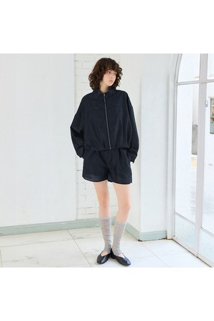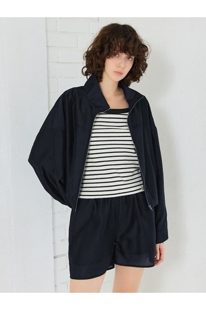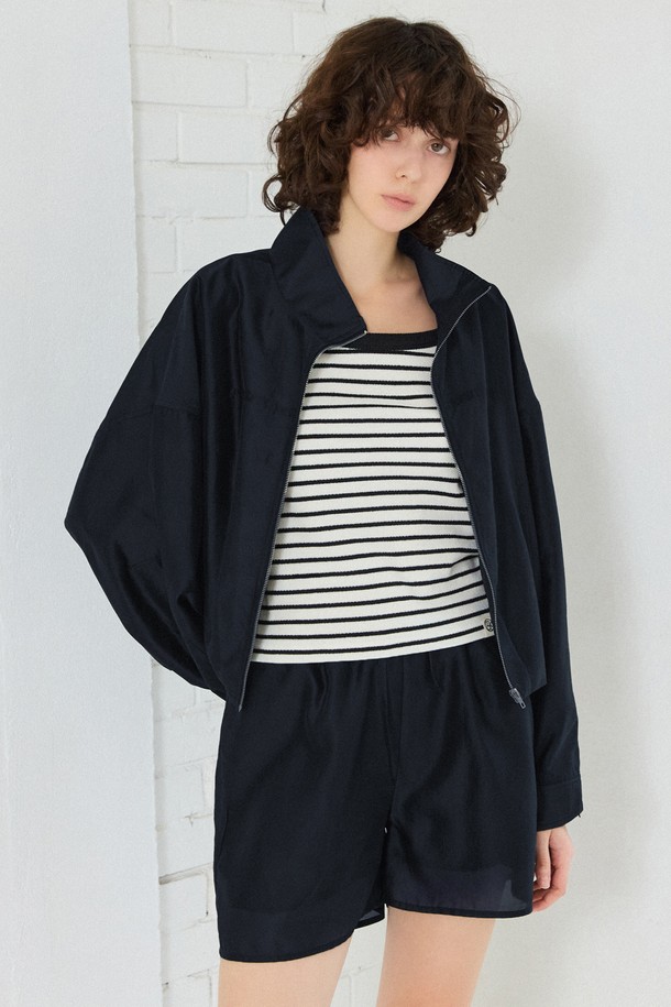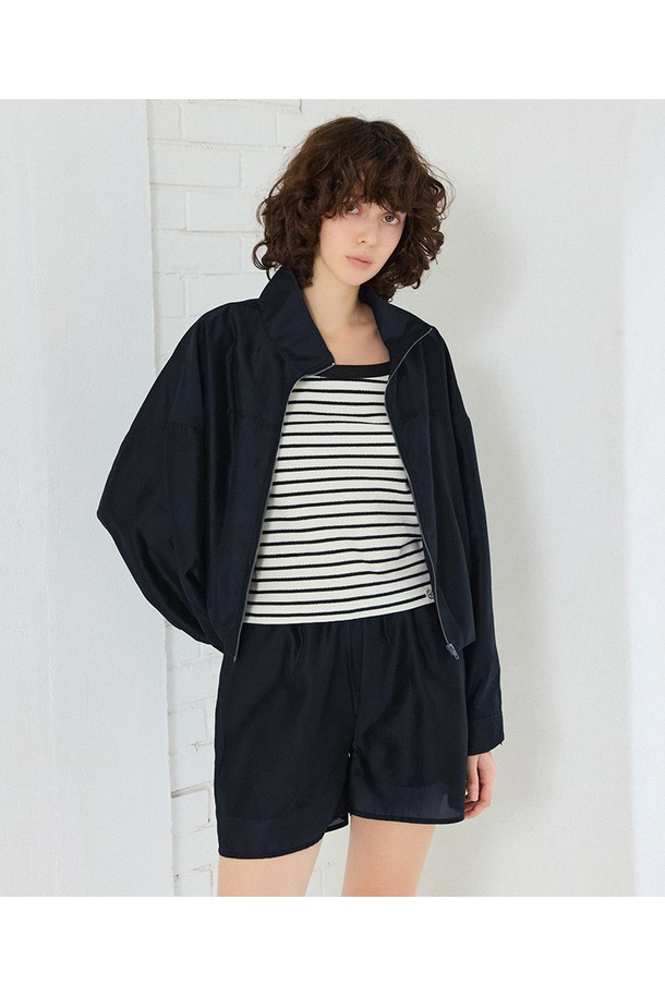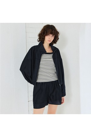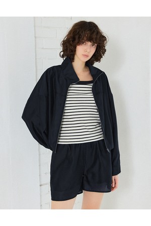 하이넥 실키 새틴 블루종 [다크 네이비]