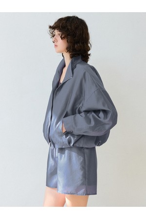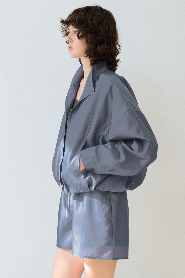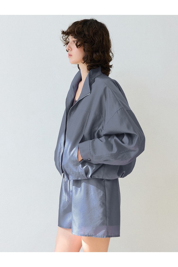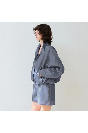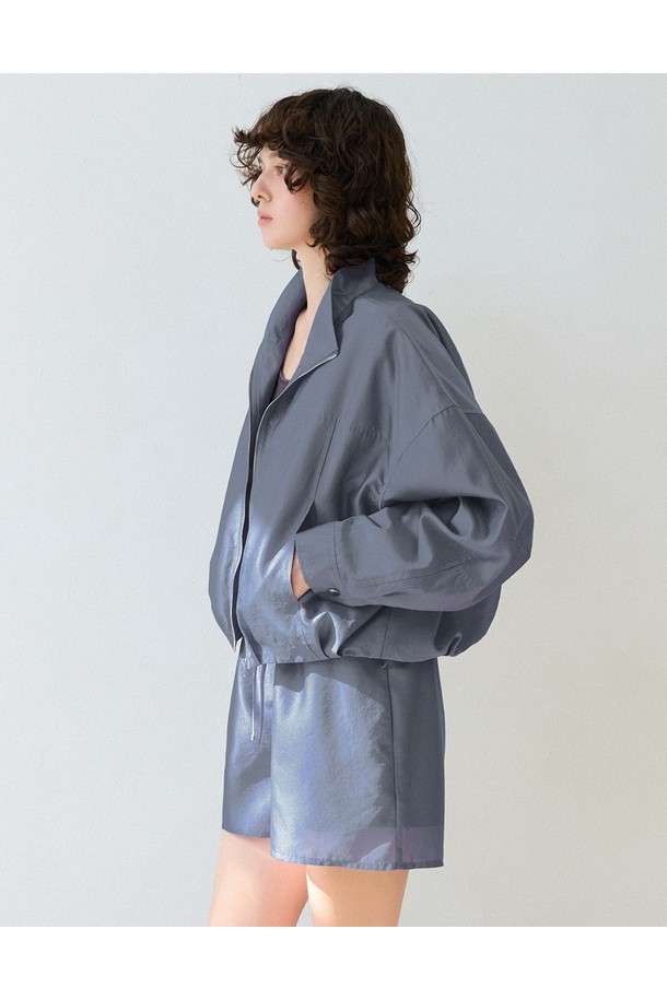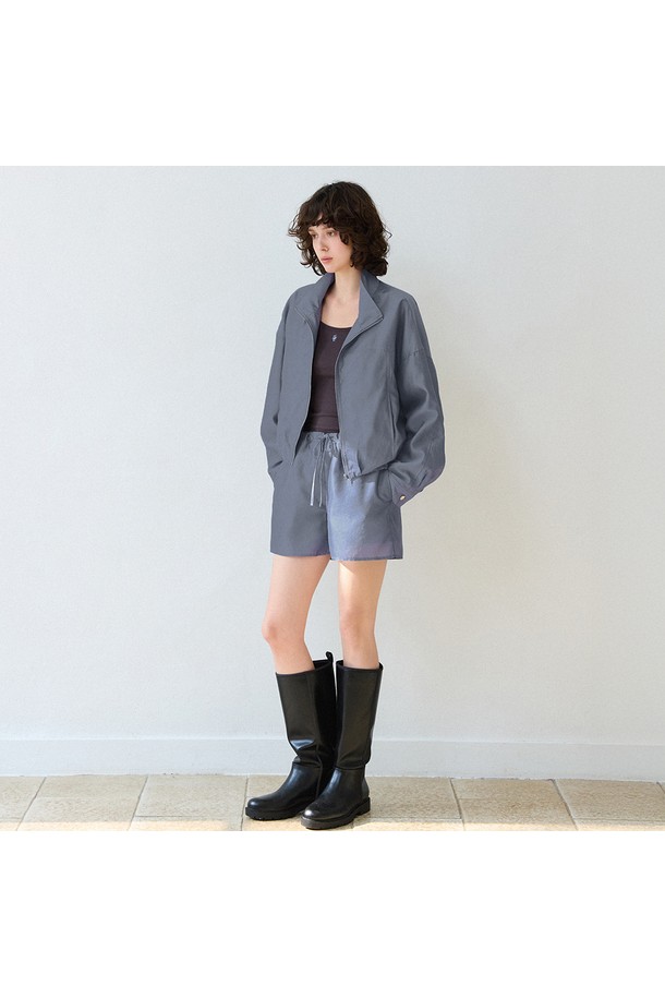 하이넥 실키 새틴 블루종 [블루 그레이]