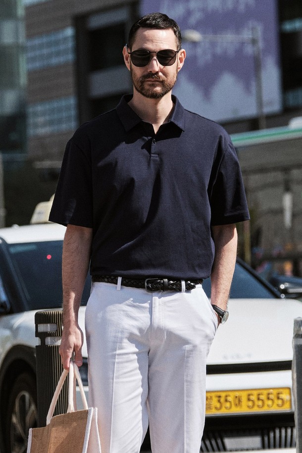 Supima 코튼 카라 반팔 티셔츠_네이비 (세미오버핏)_STSWB86NSN