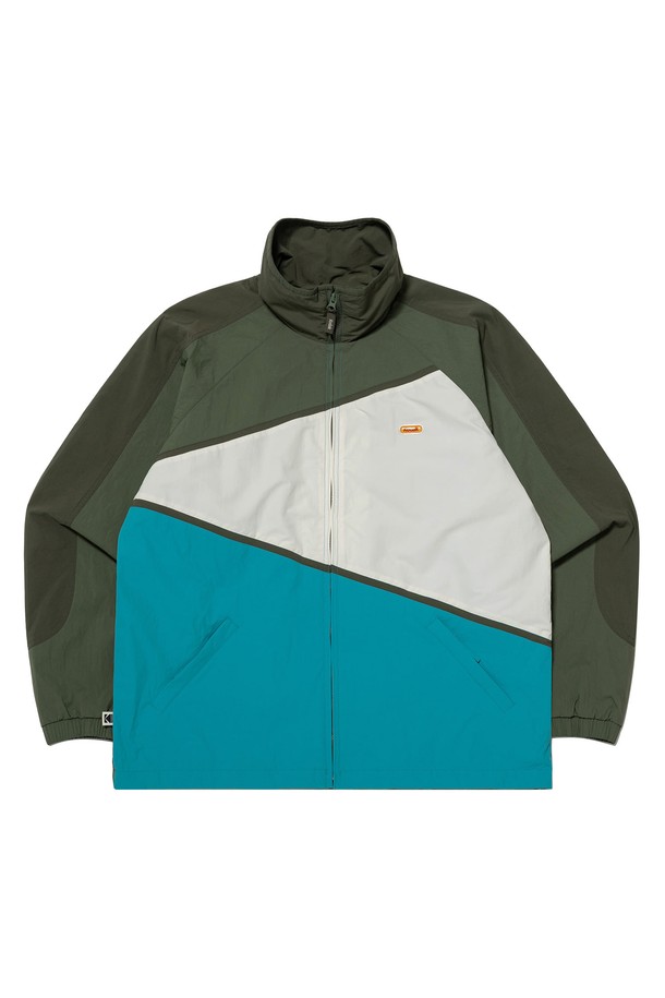 케이 컬러블럭 스탠넥 자켓 GREEN