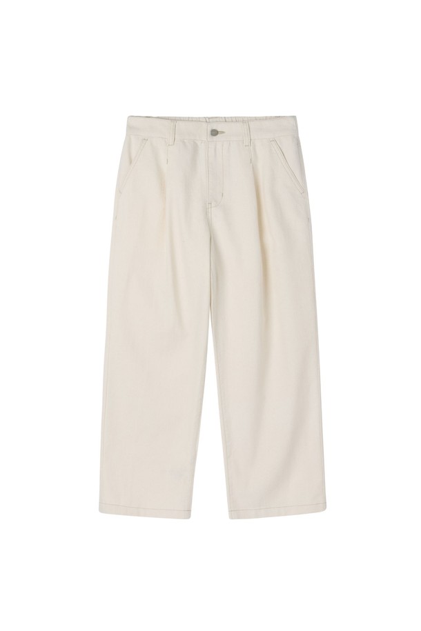 HALF BANDING ONE TUCK DENIM TROUSERS - IVORY (P262UDP481)