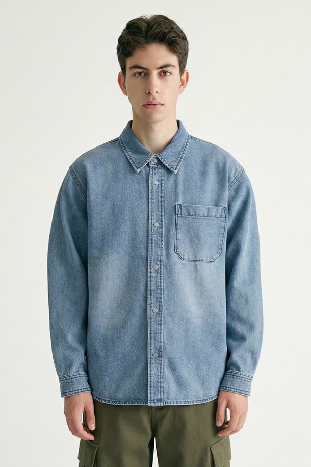 남녀공용 프레피 브러쉬 데님셔츠[MD-INDIGO](UC3LS21_05)
