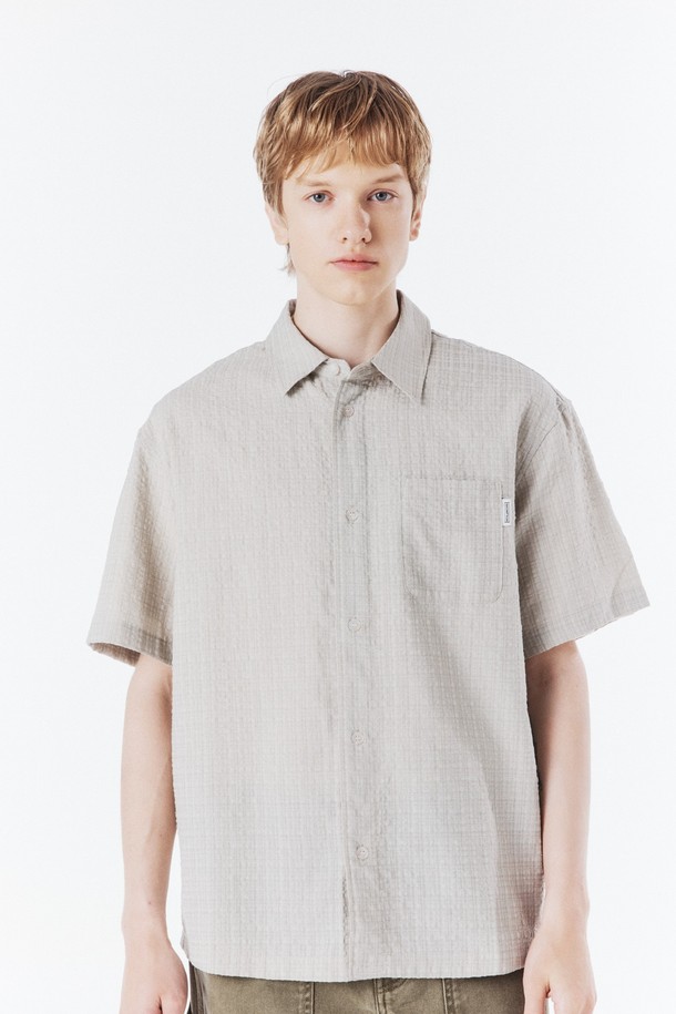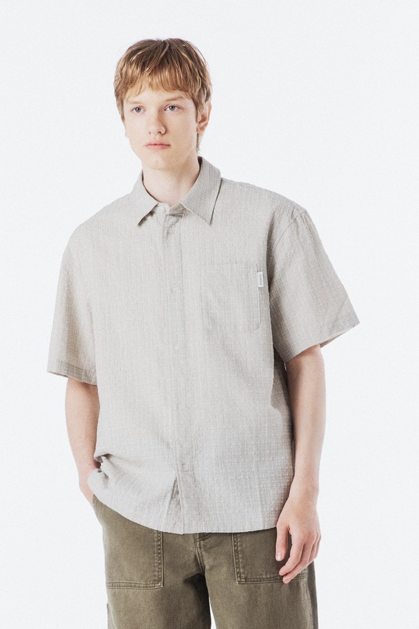 CHECK SEERSUCKER SHIRT - BEIGE (P262MSH140)