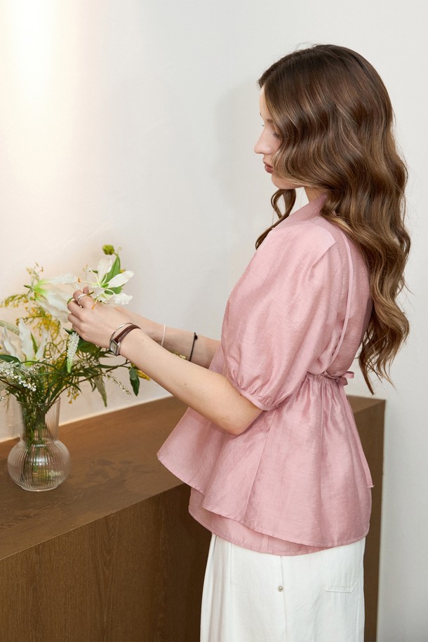 [SET] 텐셀 뷔스티에 카라 블라우스세트_PINK