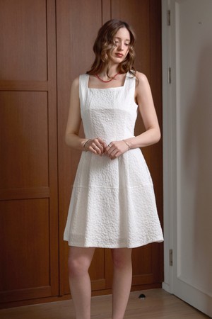 자가드 스퀘어 슬리브리스원피스_WHITE