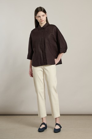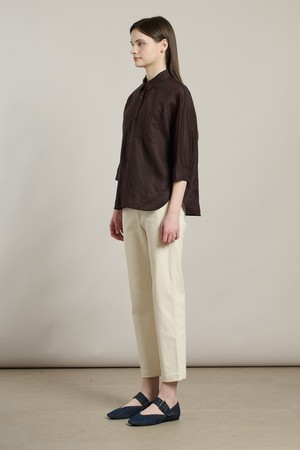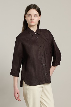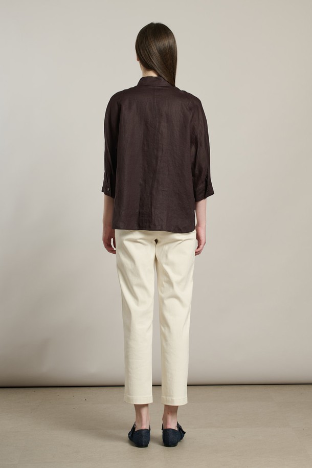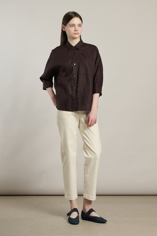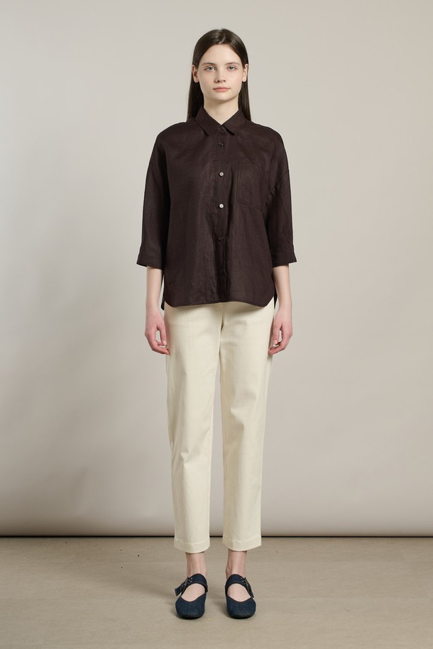 [26SU] 가슴포켓 린넨 블라우스 - DARK BROWN A6M3B40375