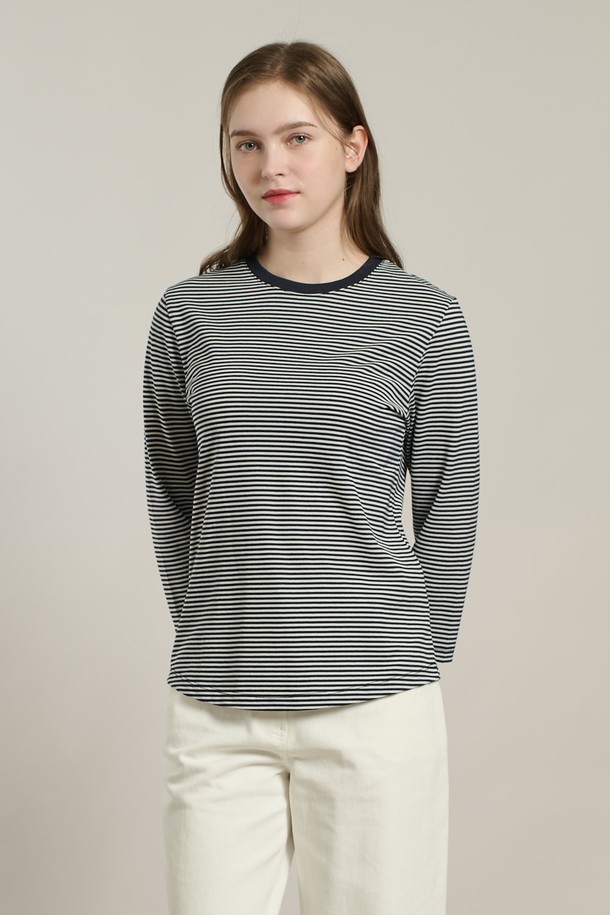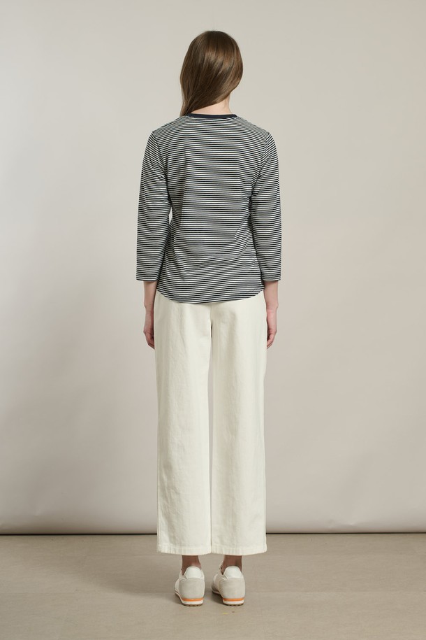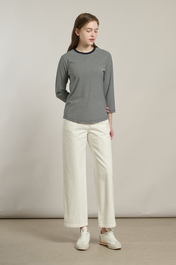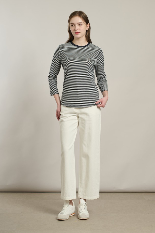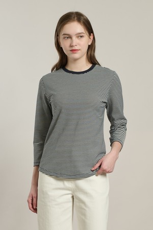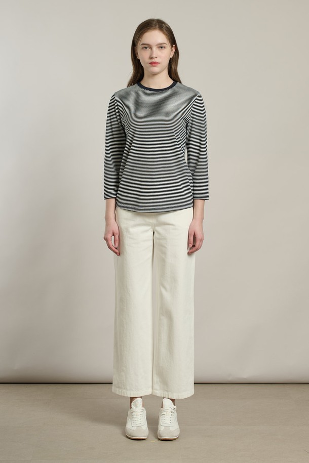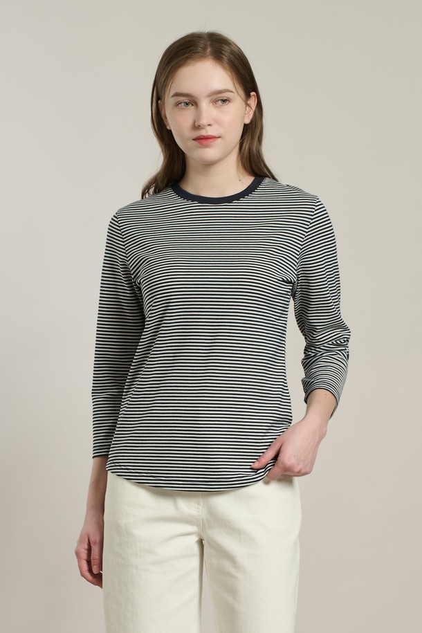 [26SU] 7부 스트라이프 티셔츠 - NAVY A6M3X40155