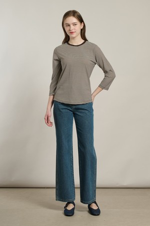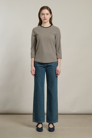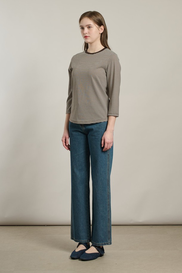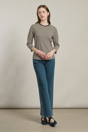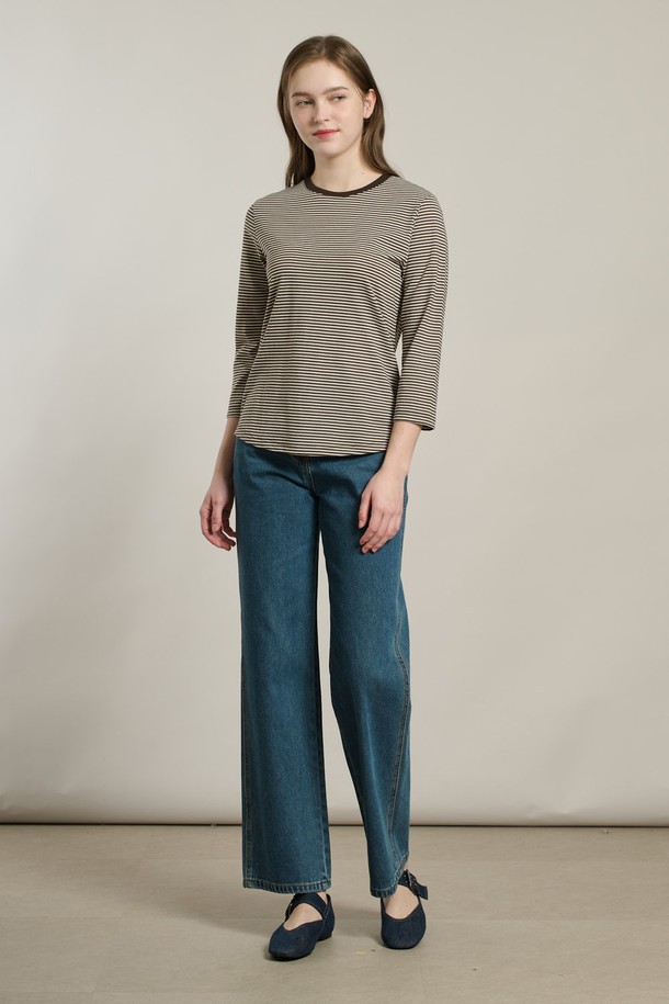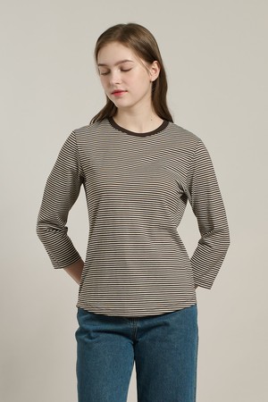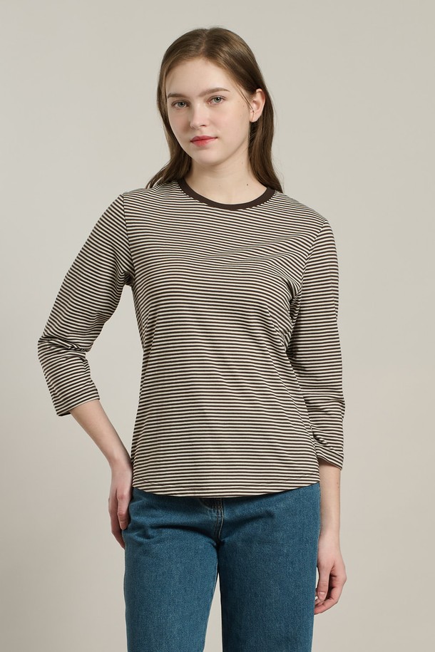 [26SU] 7부 스트라이프 티셔츠 - BROWN A6M3X40174