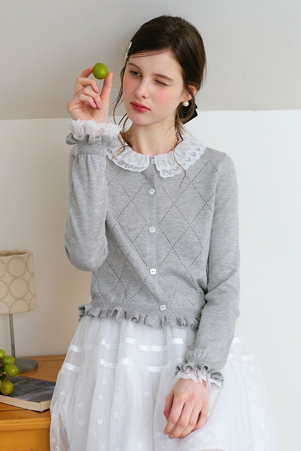 Lace flower button cardigan