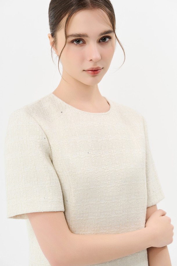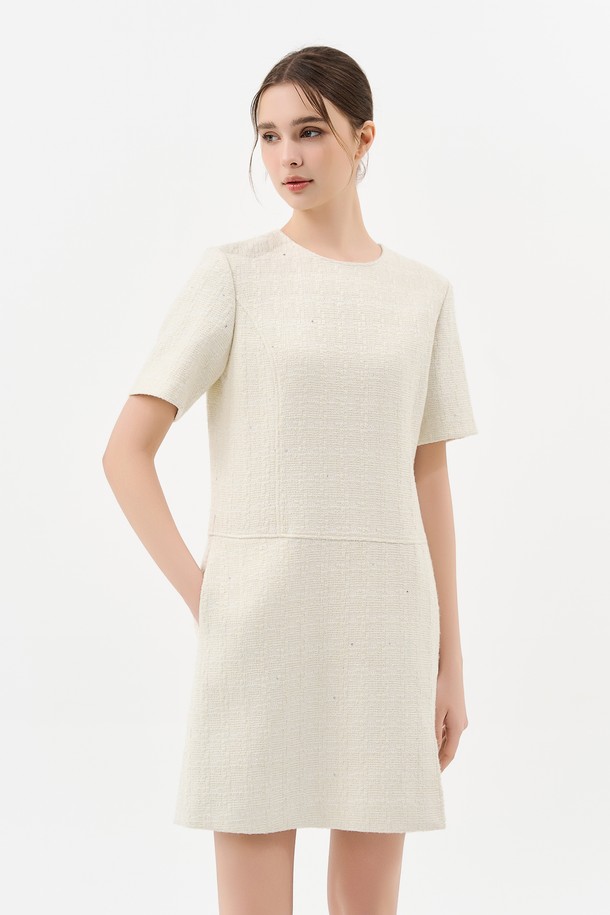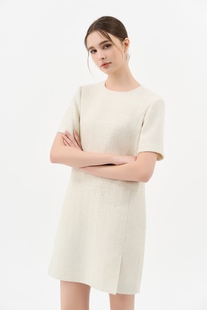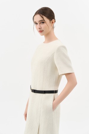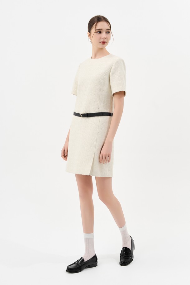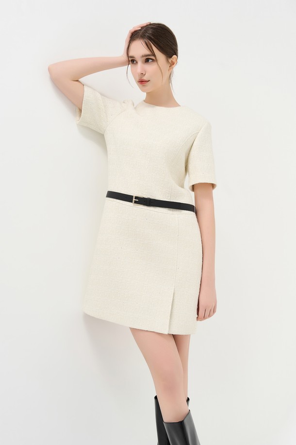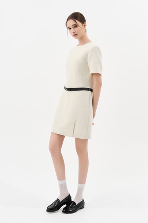 트위드 벨트 미니 드레스_IVORY