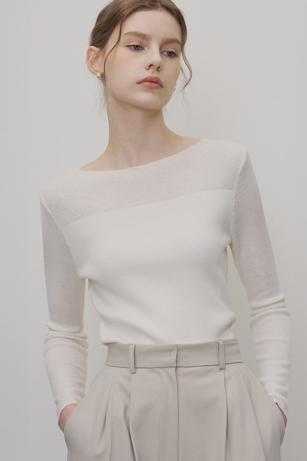 [4.10 예약발송] 모엔 블록 보트넥 니트 아이보리