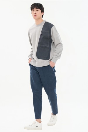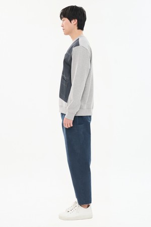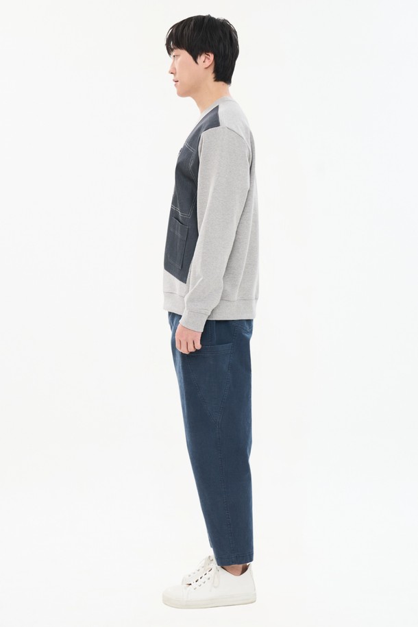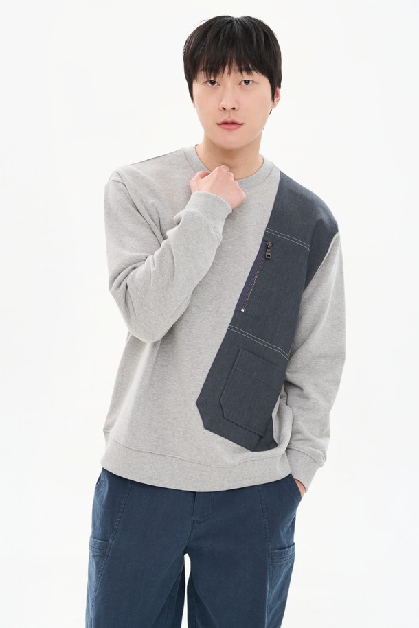 남자 데님 패치워크 배색 맨투맨 지퍼포켓 오버핏 스웨트셔츠 CXS26SKMT202 GRY