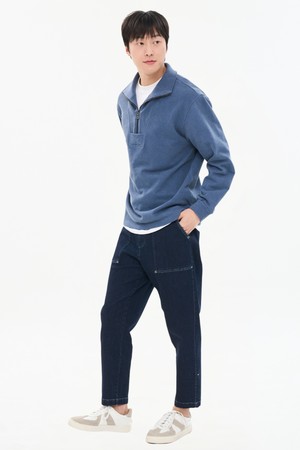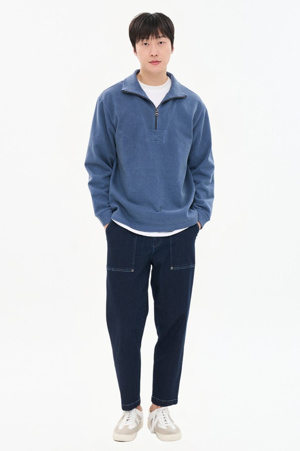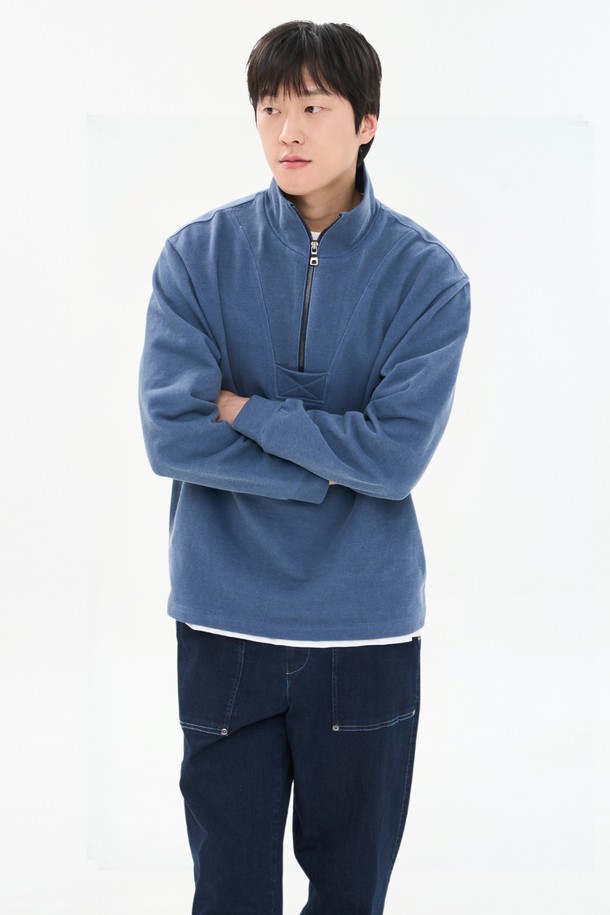 남자 피그먼트 헤비 쭈리 코튼 100% 하프 집업 스웨트셔츠 맨투맨 CXS26SKMT203 BLU