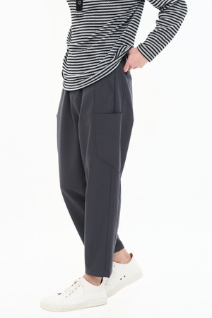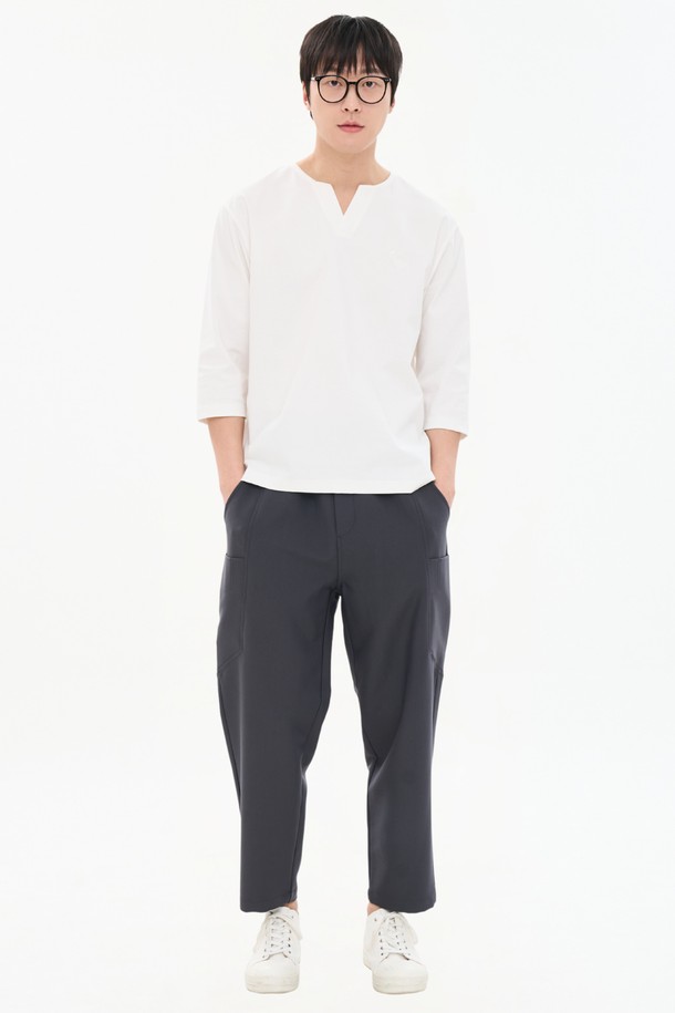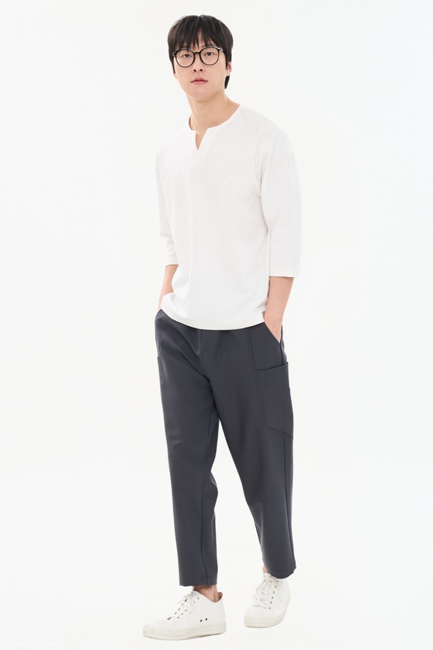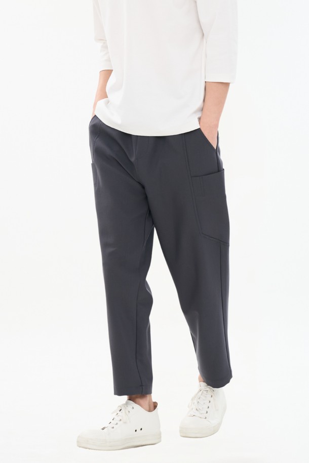 남자 변형 주머니 절개라인 배기핏 허리 전체 E밴딩 9부 슬랙스 CXS26SWPT210 GRY