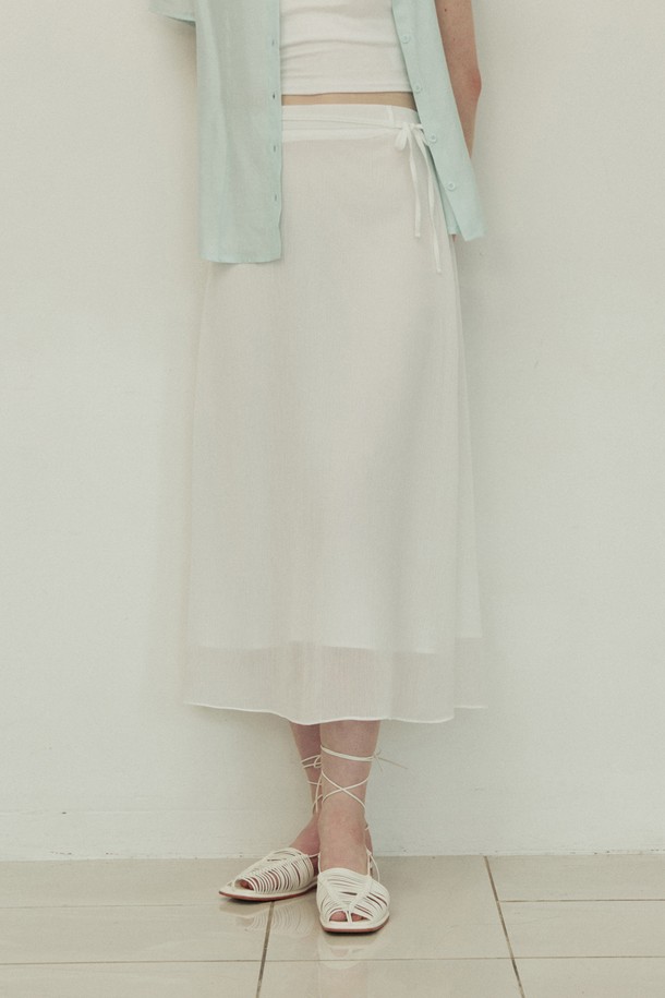 Double line ribbon strap long flare skirt - white