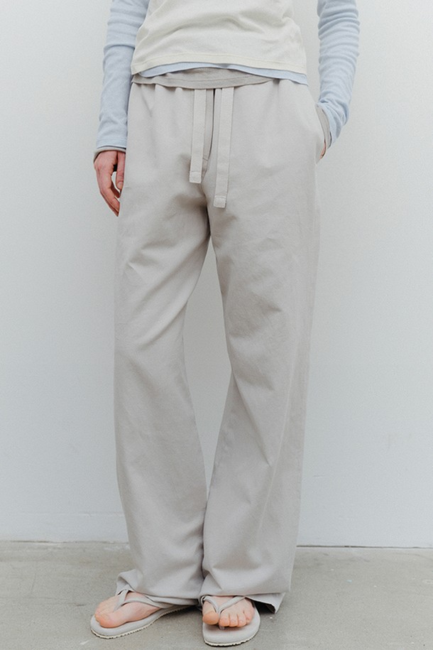 washed cotton linen banding pants (light grey)