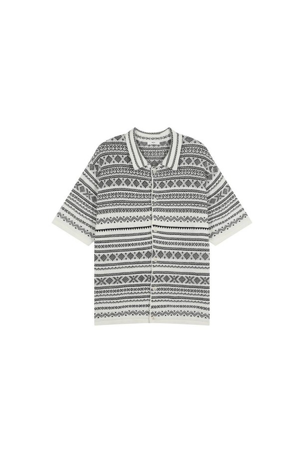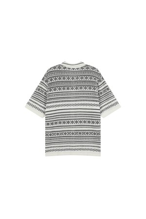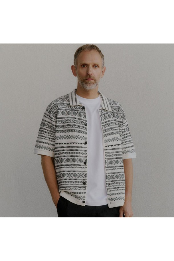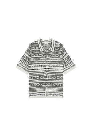 노르딕 패턴 풀오픈 반팔 가디건 블랙