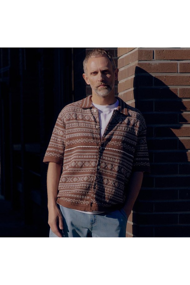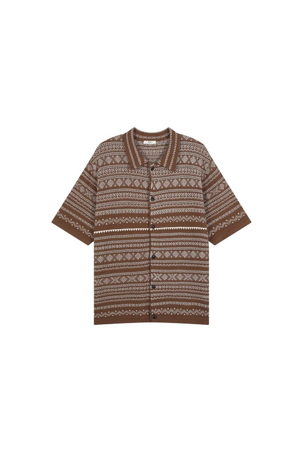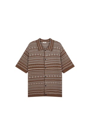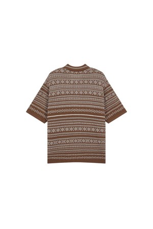 노르딕 패턴 풀오픈 반팔 가디건 브라운