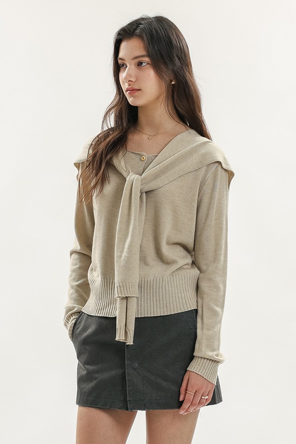 Knit cardigan shawl set_4color