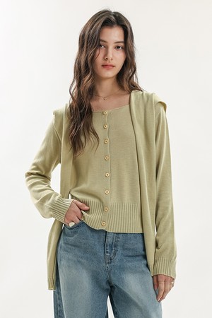 Knit cardigan shawl set_4color