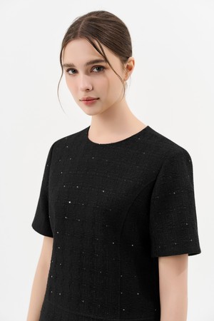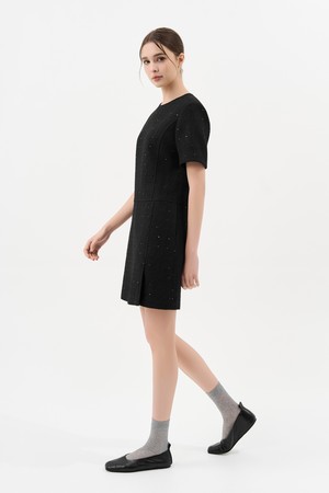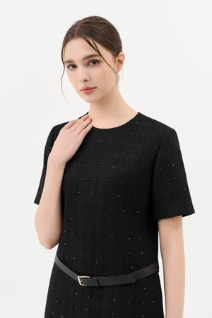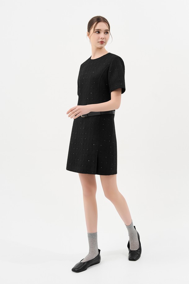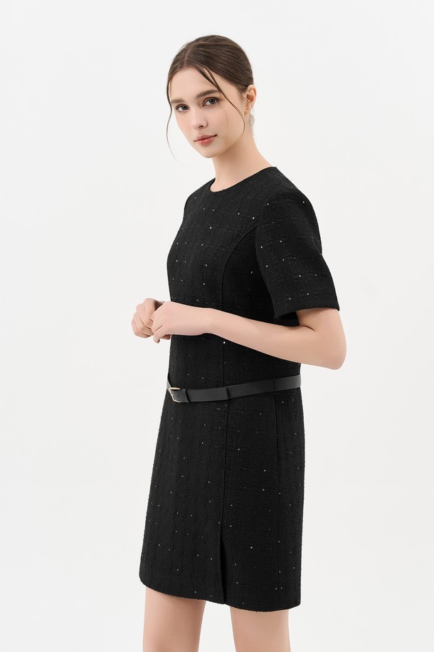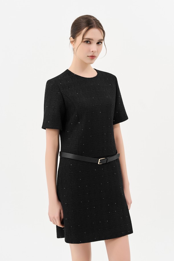트위드 벨트 미니 드레스_BLACK
