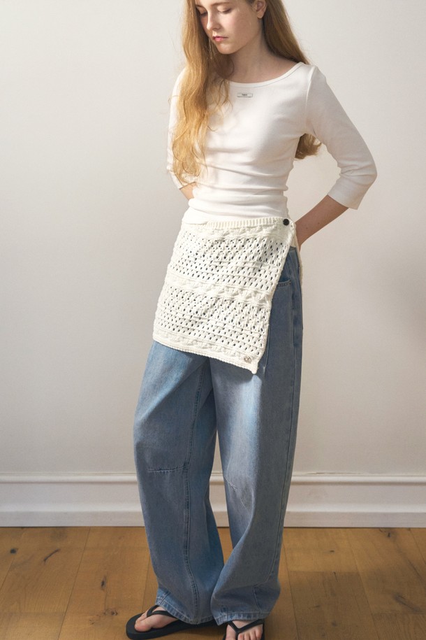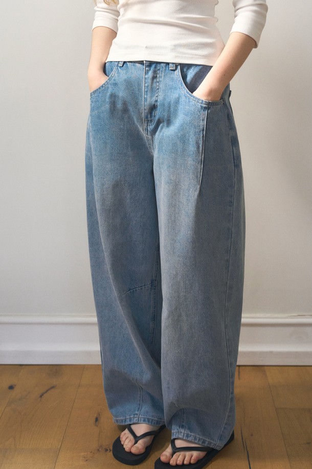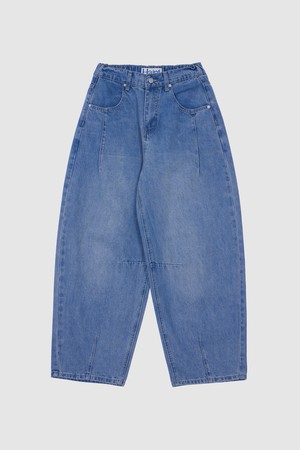 WIDE VOLUME BAGGY FIT BANDING DENIM PANTS 2COL_BLUE