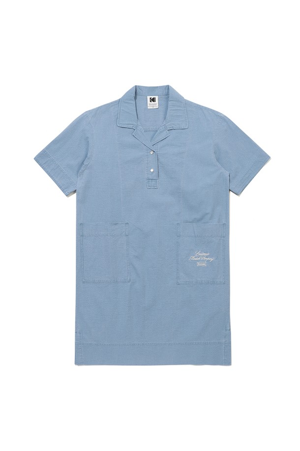 코닥컴퍼니 코튼서커 셔츠형 원피스 S.BLUE