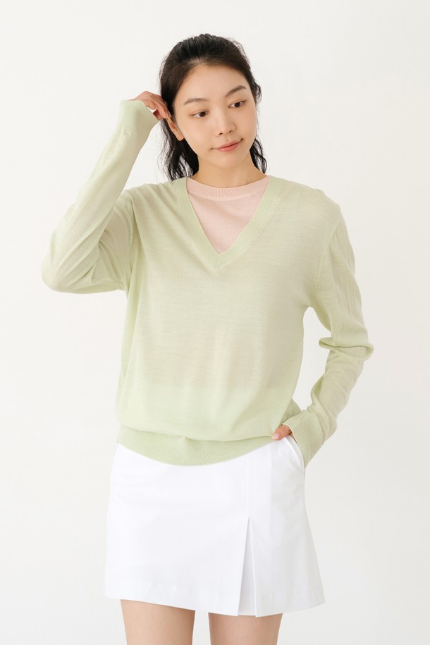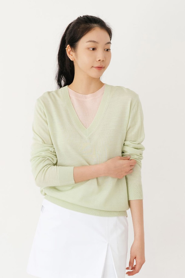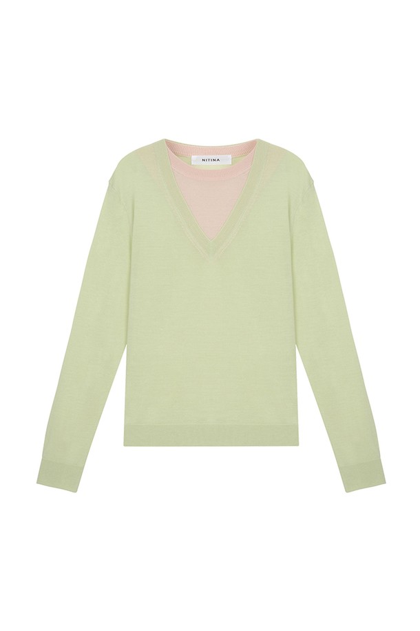 레이어드 라운드 니트 L/GR