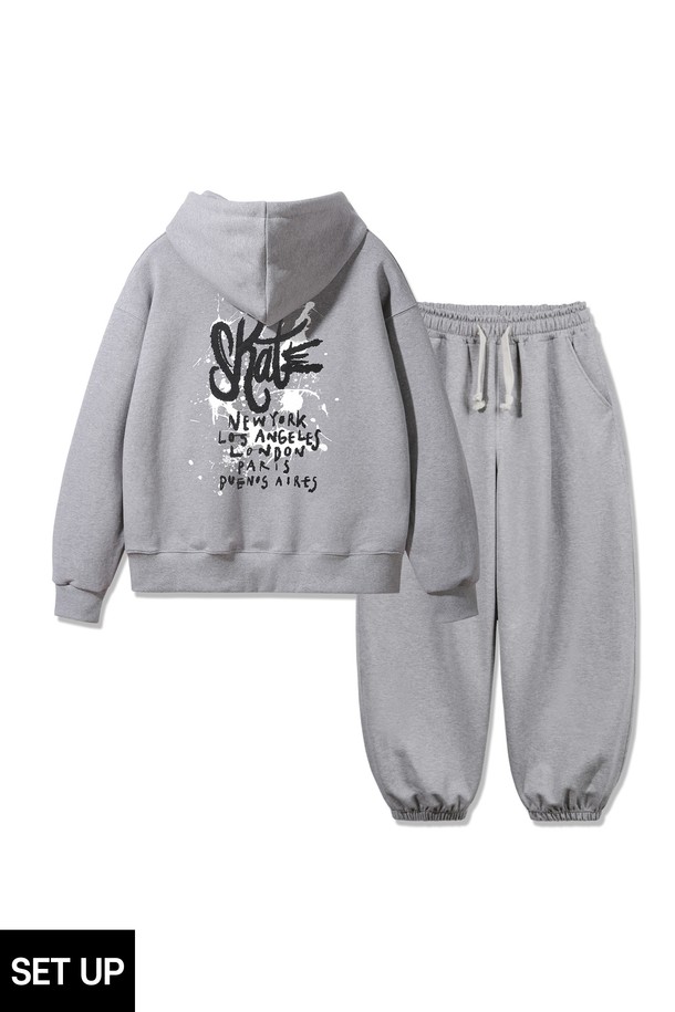 [SET] 앨빈클로 SKATE 오버핏 후드티 원턱 와이드 조거 트레이닝 바지 셋업