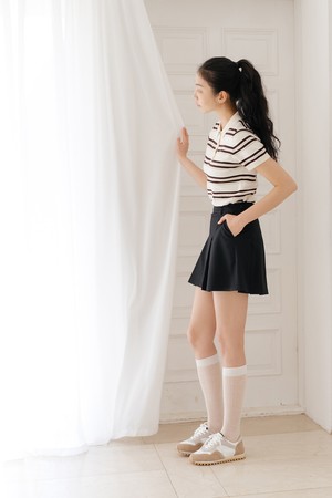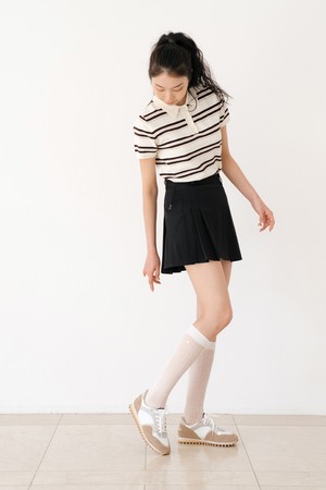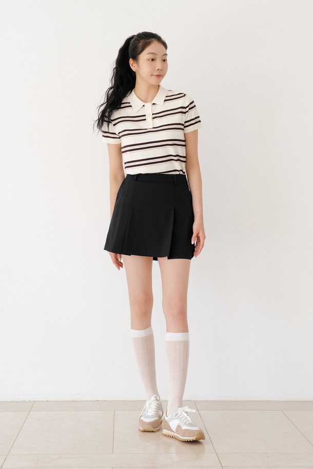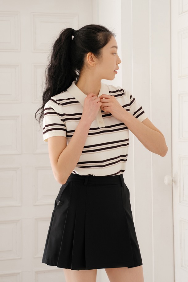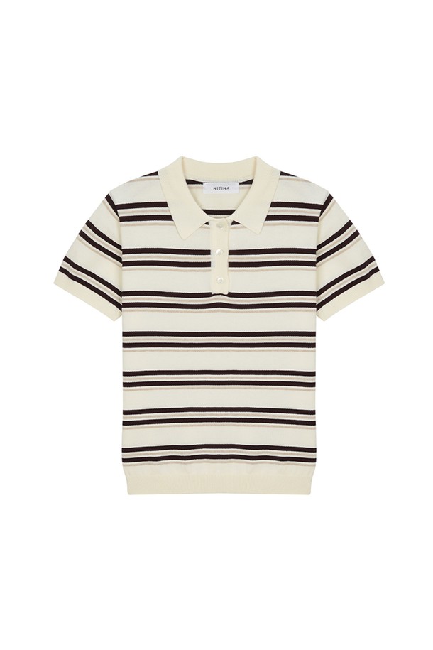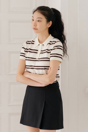 스트라이프 니트 카라 티 IV