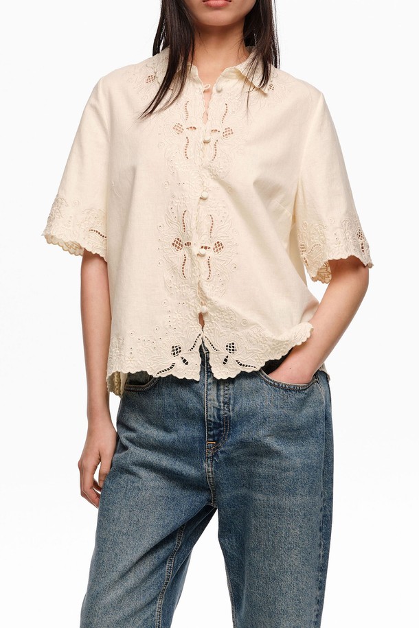 [26SS] 빔바이롤라 린넨 코튼 엠브로이드 셔츠 - 베이지 B265AWB015BEB