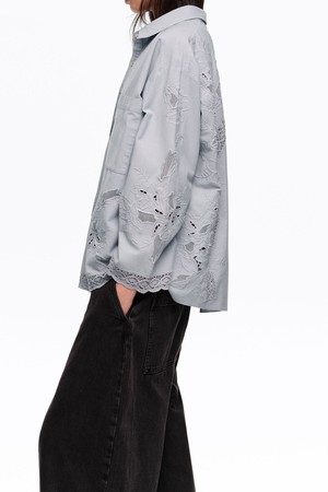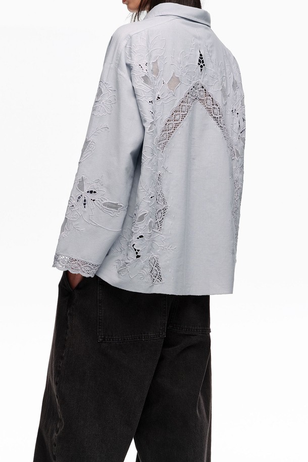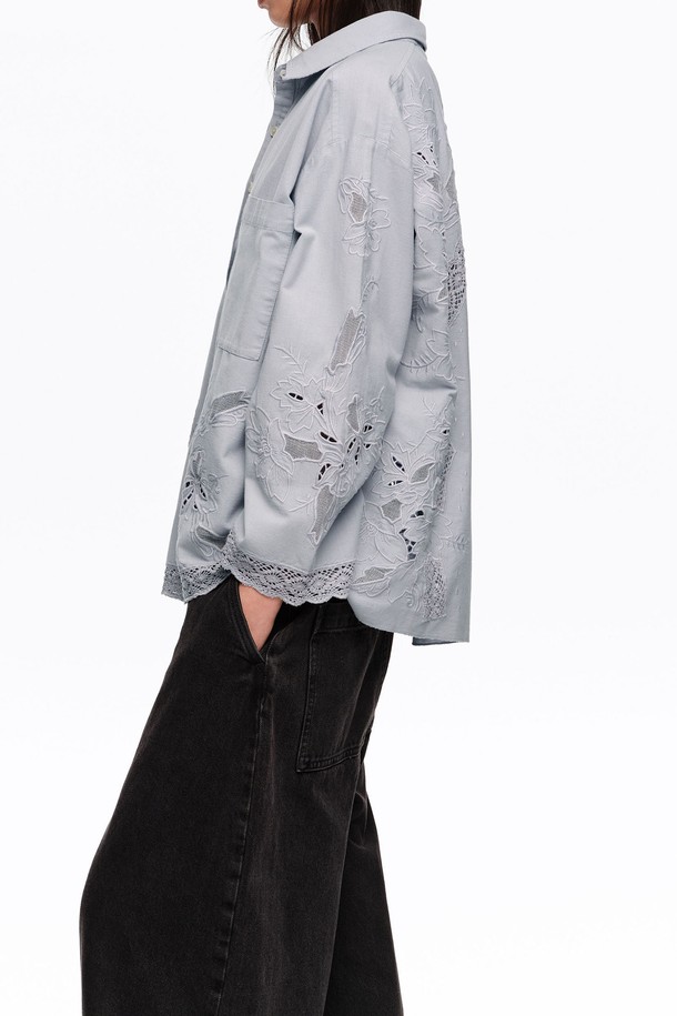 [26SS] 빔바이롤라 스트레이트 핏 자수 디테일 셔츠 - 블루 B265AWB004BLB