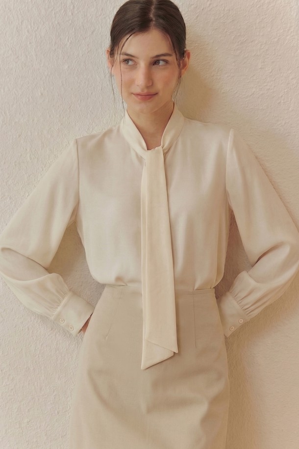 [2컬러] 타이 블라우스