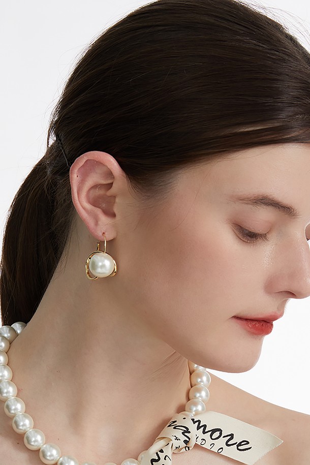 Curvy Gold & Oversized Pearl Earrings_ 곡선 골드와 오버사이즈 진주 귀걸이