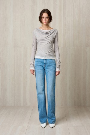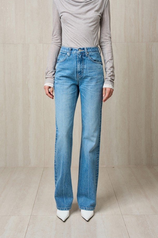 FRONT CREASED DENIM PANTS LIGHT BLUE