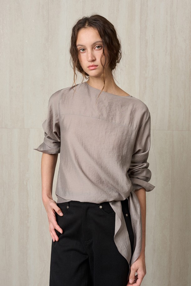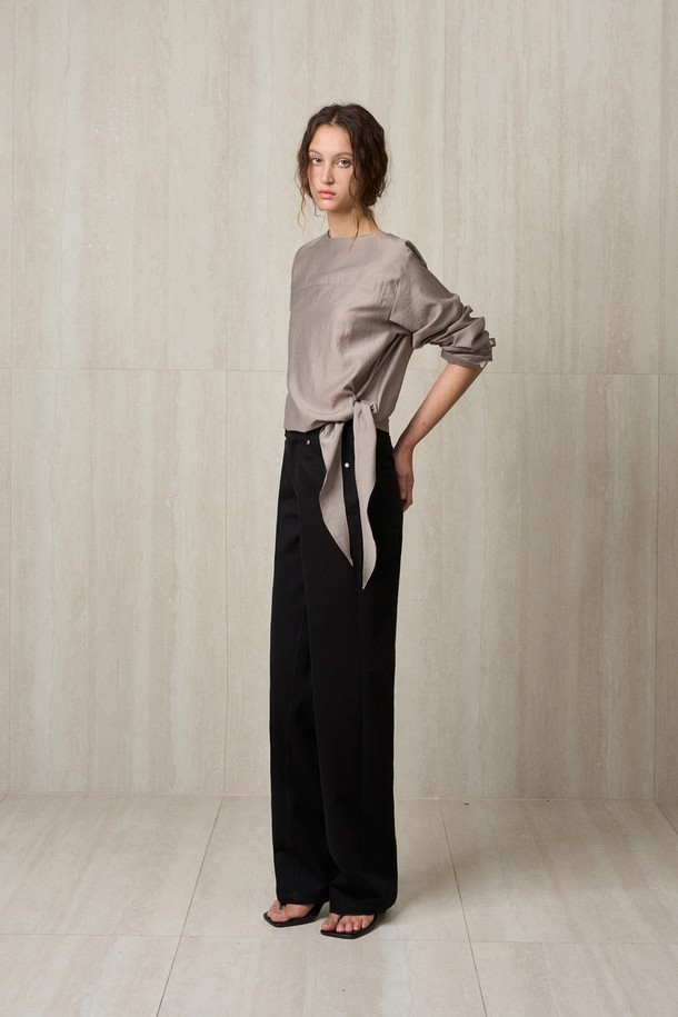 SIDE TIE BLOUSE CHARCOAL