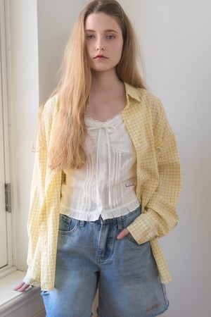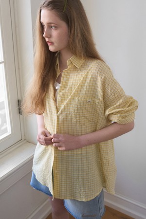SHEER LOOSE FIT CHECK SHIRT 4COL_LIGHT YELLOW