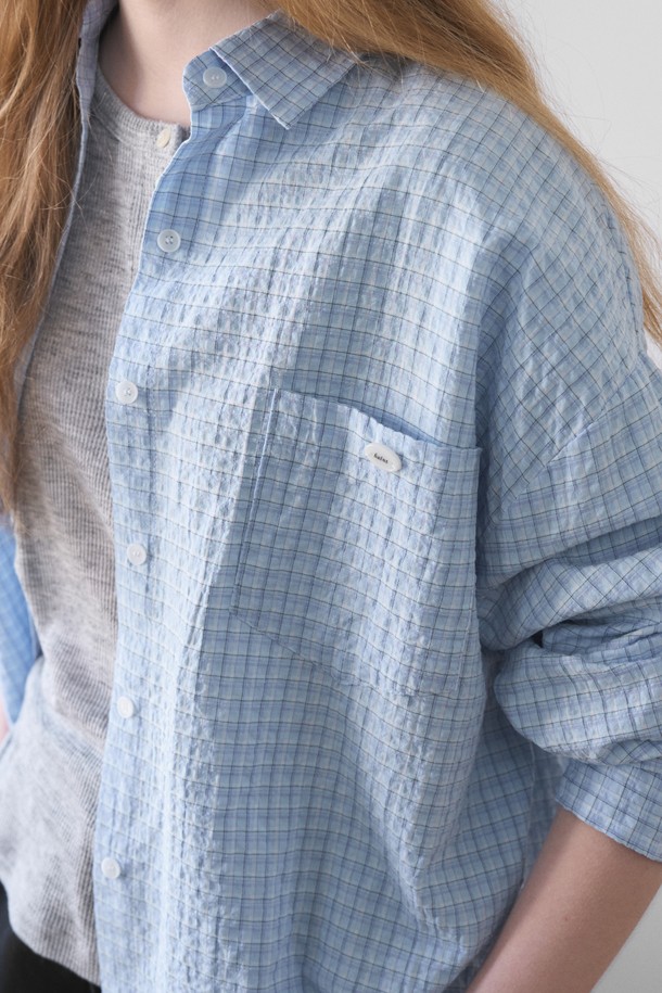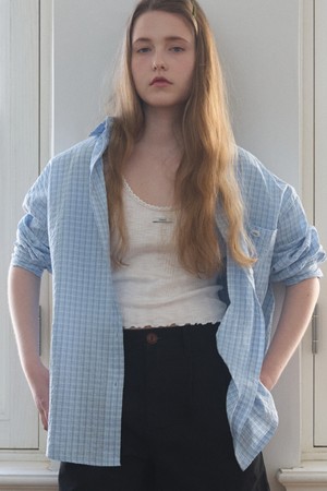 SHEER LOOSE FIT CHECK SHIRT 4COL_LIGHT BLUE