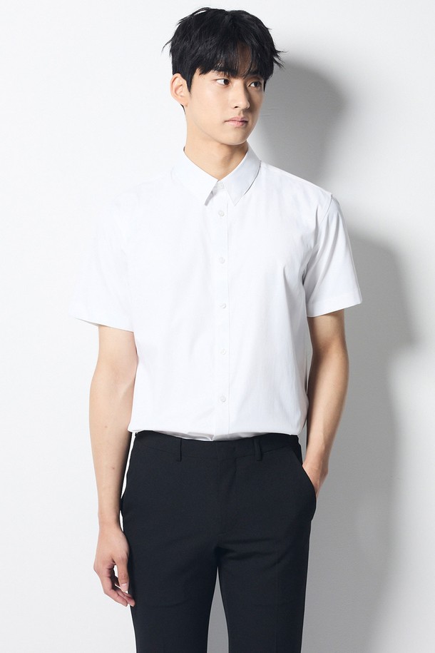 히든 버튼 클래식 반팔 셔츠_화이트 (슬림핏)_CDSVC04BSW