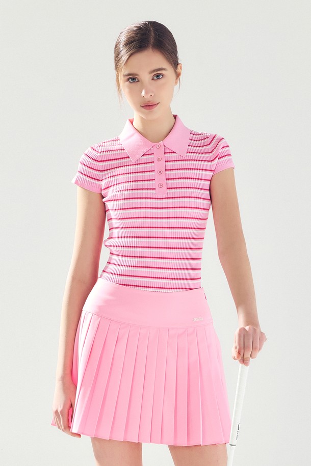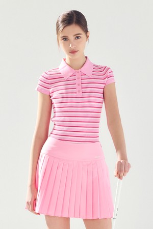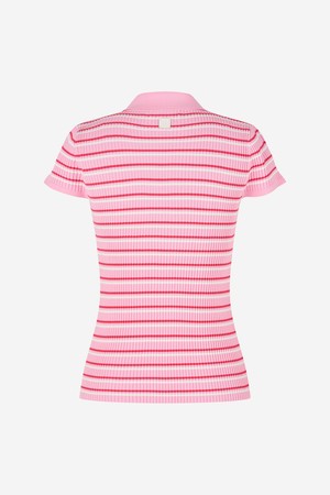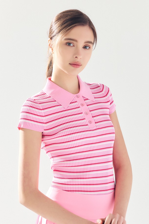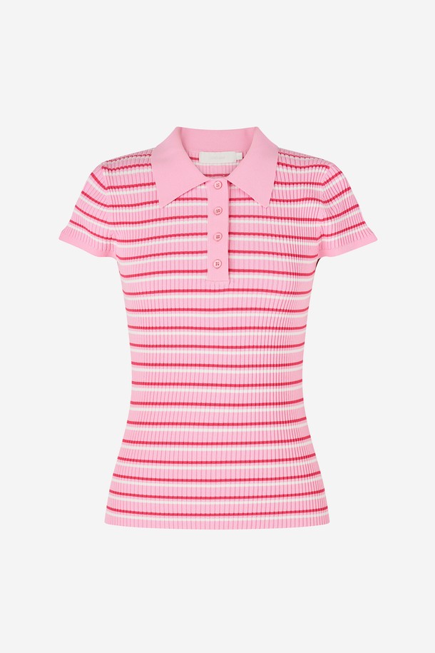 스트라이프 슬림 카라 니트 PINK
